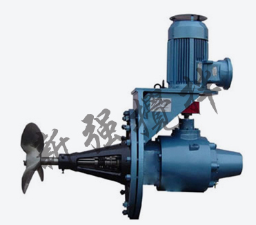 驅動裝置采用普通電機或防爆電機直接或間接通過圓柱齒輪、擺線針輪減速機的驅動裝置主軸,通過聯軸器與攪拌軸聯接。攪拌軸由雙向推力軸承和水潤滑滑動軸承支承,具有足夠的強度和剛度,并具有較高的穩定性。